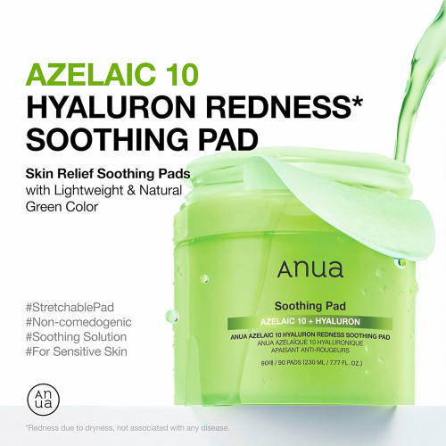 پد تونر آزلائیک اسید 10 درصد و هیالورون آنوا ضد جوش و تسکین دهنده پوست Anua Azelaic 10 Hyaluron Redness Soothing Pad