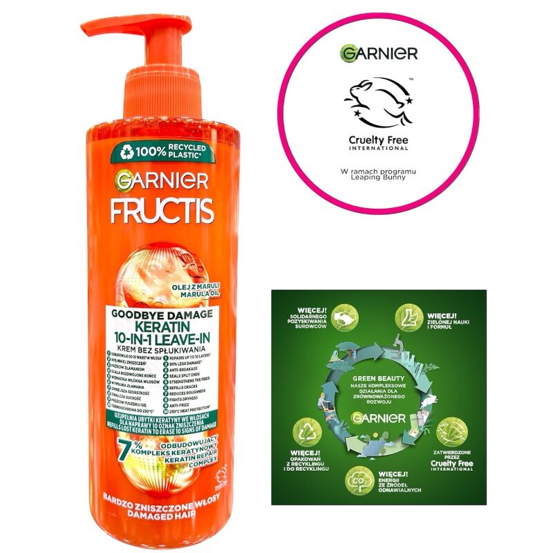 کرم مو 10 کاره بعد از حمام گارنیر مدل Grow Strong | سبز | 400 میلی لیتر | Garnier fructis grow strong 10 in 1 hair cream