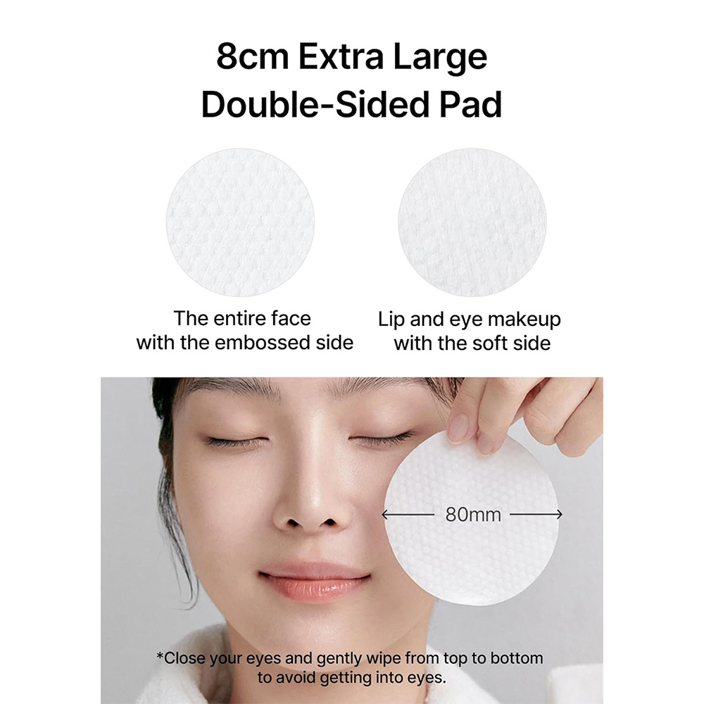 یک سمت برجسته (Embossed) برای پاک کردن آرایش و آلودگی های سطحی، و سمت دیگر پنبه ای نرم (Soft Cotton) برای پاک کردن نواحی حساس مانند لب و دور چشم