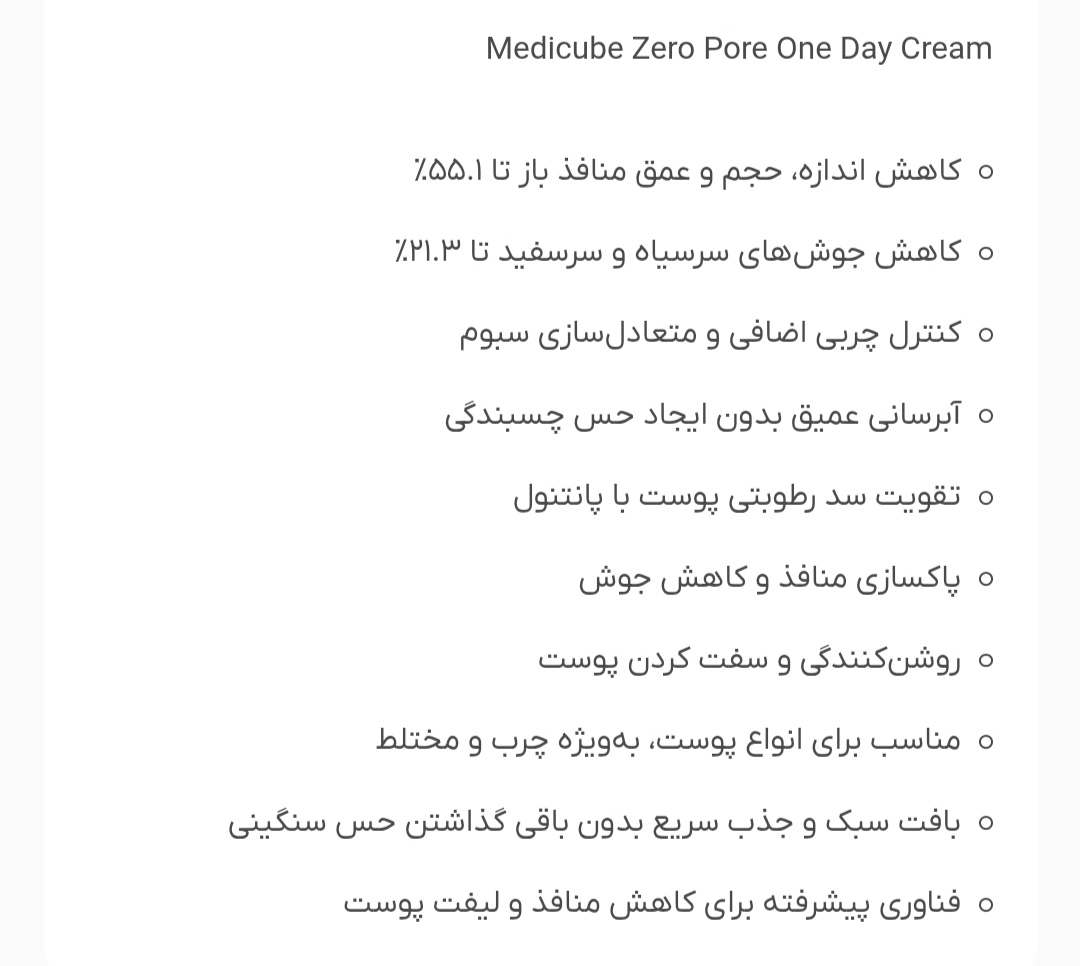 کرم درمان منافذ زیرو وان دی مدی کیوب به شرط اصل