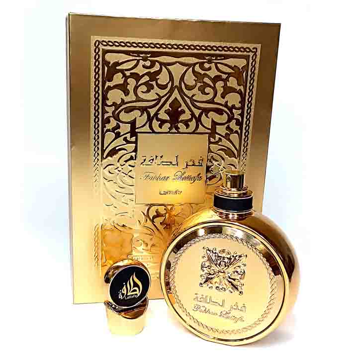 ادکلن فخر لطافه اکستریت طلایی 100ml دارای رایحه ی تند و گرم و مرکیاتی است و بخاطر طبع گرمی که دارد برای استفاده در فصول سرد سال انتخاب بسیار مناسبی است.این ادکلن یک ادکلن زنانه/مردانه و بسیار خوشبو است. ادکلن فخر لطافه طلایی در حجم 100 میل و غلظت ادوپرفیوم تولید شده است و بخاطر استفاده از رایحه های طبیعی و اورجینال از ماندگاری و پخش بوی بالایی برخوردار است.ادکلن فخر لطافه اکستریت در گروه بویایی گلی/میوه ای قرار دارد و رایحه ی بسیار خوشبو دارد.این ادکلن در نت اولیه ی خود دارای رایحه ی فلفل صورتی، گریپ فروت و هل می باشد در نت میانی می توانید رایحه ی درمنه، گل سرخ و نت های خورشیدی را استشمام کنید و در انتها به رایحه ی ترمه، چرم، عنبر و لبدانیم ختم می شود.